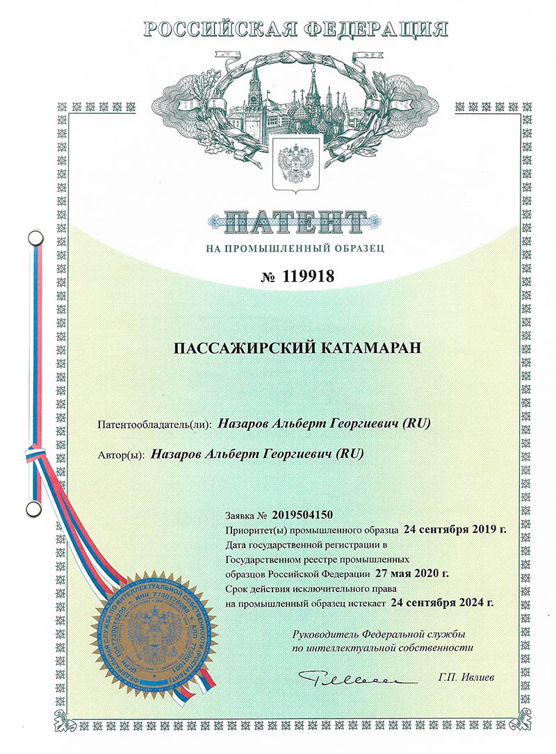 Пассажирский катамаран, выполненный по экологичным технологиям, с электрической и солнечной тягой (или двигателями внутреннего сгорания в качестве опции).