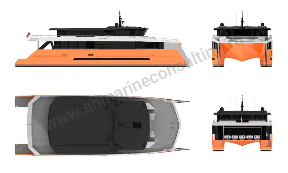 Основные характеристики: максимальная длина 32,45 м, ширина 11,45 м, материал корпуса – композит.