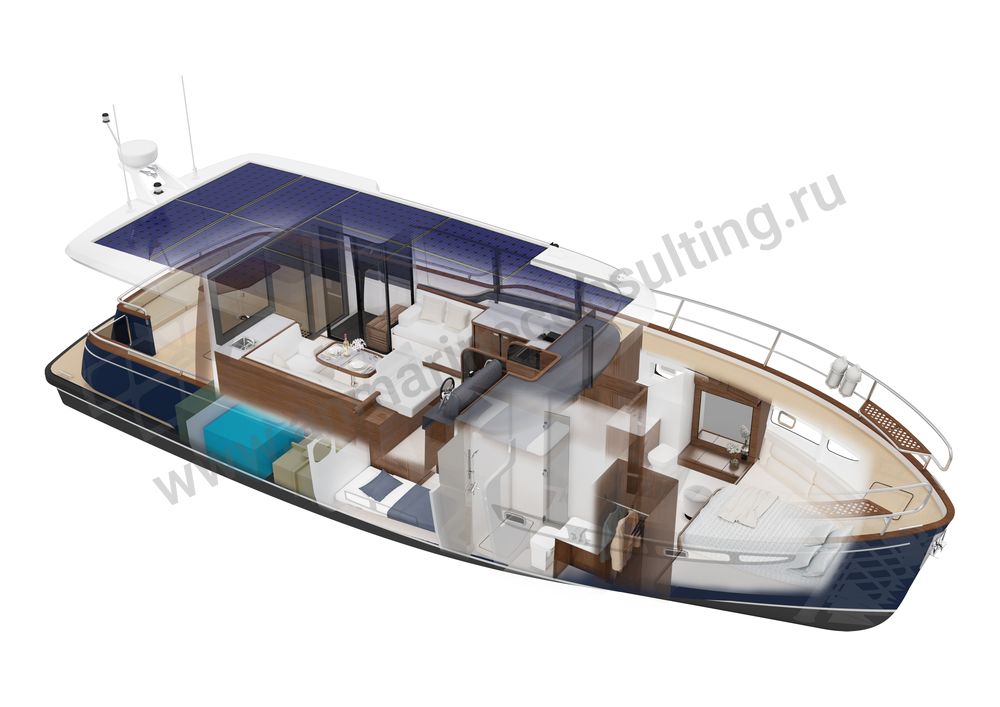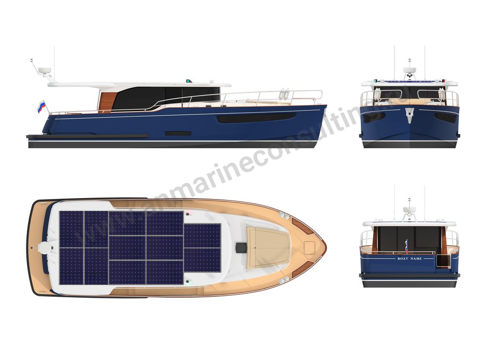 Основные характеристики: длина наибольшая 13,87м, ширина наибольшая 4,62м, двигатель 1х147 кВт, скорость до 10уз, материал корпуса – алюминиевый сплав, пассажиры/экипаж - 12/2 человека.